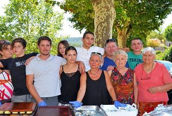 Pour l’aïoli de ce lundi sous les platanes du boulodrome, la brasserie « chez Fanfan » avait décentralisé du bar de la place de la mairie, congélateurs, marmites, vaisselles, verres, couverts et tout le bataclan nécessaire pour que les participants au repas soient accueillis dans les meilleures conditions. Toute l’équipe de bénévoles n’a pas chômé et les invités, dont le sous-préfet Portal, des conseillers départementaux et des élus de la CAD, de cet aïoli organisé par la municipalité, ont apprécié la savoureuse pommade préparée par Hervé. Du côté de la « boule ampusianne », vingt-six équipes ont participé à la pétanque qui a suivi les agapes. Cette journée très conviviale a été un succès et tous les acteurs méritent un coup de chapeau.
