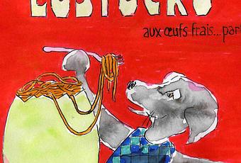 Mais il y a eu les “fêlés des pâtes”, joyeux extra-terrestres aux prises avec Germaine, la vieille dame emblème de Lustucru. Le fameux damier bleu et blanc est né en 1911, à l’issue d’un concours entre les plus grands affichistes de l’époque: Forain, Poulbot, Synave, Carlège etc. C’est le projet de Synave qui l’emportera, mais la silhouette du “père Lustucru”, ainsi d’ailleurs que son nom sont dus à Forain. En 1964, la publicité de la marque sera récompensée par la palme d’or du film publicitaire à Venise et en 1965, par les 1er et 2ème prix du festival de Cannes. L’affiche dont je me suis inspirée est l’œuvre de Saint Genies, date inconnue.
