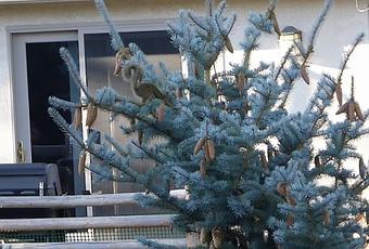 Vous verrez que celui-ci est super bien organisé en commençant par la cime de l'arbre de notre voisin et en détachant systématiquement autant de pommes de pin que possible pour les faire tomber au sol, avant de les ramasser un plus tard et les ramener à la maison pour les ajouter à ses réserves hivernales …