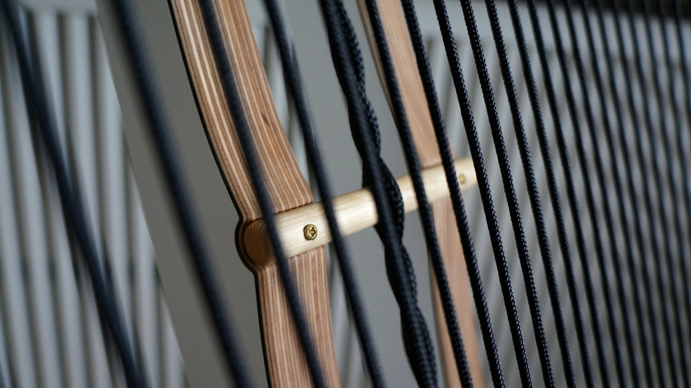 A noter qu’il y a pas moins de 85 mètres de fil entrelacé dans la structure toute en rondeurs, lui conférant confort et souplesse à l’assise. La structure de bouleau stratifié découpée en commande numérique dévoile son épaisseur et laisse penser à un jeu de construction. Cette alliance nous renvoyant à la construction de certains bateaux, nouvelle références aux grands espaces aquatiques.