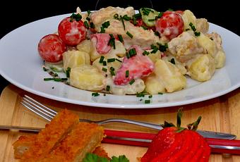 Lors de précédents billets, je vous avais parlé du flexitarisme, cette pratique alimentaire semi-végétarienne dans laquelle les produits animaliers sont beaucoup moins consommés et remplacés par d’autres produits qui présentent les mêmes valeurs nutritionnelles.Pour répondre à cette demande, plusieurs marques ont mis des gammes végétales sur le marché.Cette année, c’est Le Gaulois, spécialiste des cordons bleus avec du poulet / dinde, qui a lancé sa gamme Le Gaulois Végétal : escalope, nuggets, boulettes, steaks mais végétariens (pas de viande mais du soja / blé).La recette flexitariste que je vous propose, aujourd'hui, est à base de fruits, de légumes et de steaks végétaux. C’est très simple à faire et c’est très bon. La suite de la recette : cliquez ici