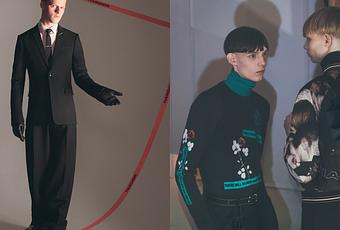 DANS L'UNE DES MISES EN SCÈNE, LES LIGNES DE SCOTCH HARDIOR CONÇUES POUR LE DÉFILÉ HIVER 2017/18 FORMENT UN DÉCOR GRAPHIQUE POUR LES PORTRAITS EN GROS PLAN ET EN PIED, METTANT EN VALEUR LE TAILORING DE LA SAISON, ENTRE RAYURES TENNIS ET SILHOUETTE DÉCONSTRUITE, PORTÉ AVEC DES DÉTAILS MÉTALLIQUES ET DES BASKETS À SEMELLE CAOUTCHOUC. UNE DEUXIÈME SÉRIE D'IMAGES MIXE DES ÉLÉMENTS DE LA BOURGEOISIE D'ANTAN AVEC L'ÉNERGIE PURE DE LA JEUNESSE, ACCENTUÉS PAR LA SIGNATURE VISUELLE DE DAVID SIMS, UN SAVANT JEU D'OMBRES ET DE LUMIÈRE. LE MESSAGE MODE TRÈS FORT DE LA COLLECTION EST SOULIGNÉ PAR UN CHOIX DE LOOKS TRÈS GRAPHIQUES : VESTES D'INSPIRATION COLLEGE, PANTALONS LARGES ET MAILLES INTARSIA ORNÉES DE SLOGANS COMME " THERE WILL BE NOISE COMPLAINTS " OU " THEY SHOULD JUST LET US RAVE ".