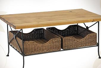 Table basse bois et fer source google image : http://img.deco-et-ambiances.fr/catalogue/jpg/6994-table-basse-bois-massif-fer-forge-paniers-osier.jpg