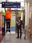 Dans le même temps, cet après-midi, à Vannes, le collectif Ai'ta a "bilinguisé" la gare de Vannes (voir photo ci-dessus): "Monet er-maez" (sortie), "Parklec'h ar c'hornog" (parking ouest), "Diwall" (attention) et autres mots se sont vus accolés au français.
