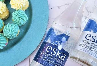 marque ESKA. Les bouteilles d’eau de source naturelle et l’eau de source naturelle gazéifiée