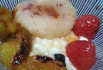 L'été, j'aime bien les desserts light qui ne prennent pas trop de temps...j'adore les fruits rôtis au four...je trouve que la cuisson à four doux est un exhausteur de goût...cela permet aussi de sublimer des fruits pas toujours au top de leur saveur...