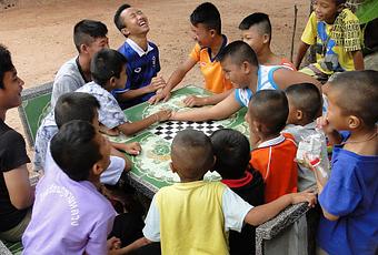 Bras de fer en Issan (nord-est Thaïlande)Pour entretenir l'amitié,Rien de tel qu'un bon jeu viril Bras de fer en Issan (nord-est Thaïlande)
