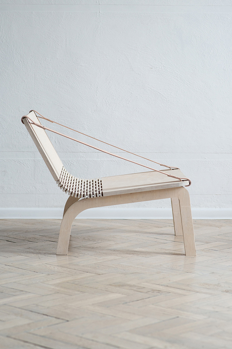 Agnieszka Kowal, jeune architecte d’intérieur Polonaise, présente Dango, un fauteuil en contreplaqué épuré et modulaire pouvant également se convertir en deux poufs.