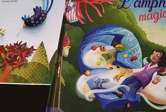 Vous le savez, j'aime beaucoup les contes du monde qui nous viennent d'horizons lointains. Ce conte coréen est une réelle découverte et j'ai adoré le texte de Pog qui nous plonge dans une ambiance magique d'une histoire universelle qui a un message à nous livrer. Un jeune paysan trouve une amphore qui multiplie par centaine ce que l'on met dedans. Bientôt le paysan n'a plus besoin de travailler mais le préfet, sournois et envieux va lui mettre des bâtons dans les roues. Il s'empare de l'amphore magique... "Un bien mal acquis ne profite jamais"... voici la morale de cette histoire dont j'ai adoré le traitement narratif, à la fois léger et drôle. Les illustrations sont très réussies. Je ne connaissais pas le travail de Estelle Rattier et je découvre un univers charmant, très coloré et pétillant qui donne du peps et une note expressive à l'histoire. L'amphore magique est un conte vraiment sympathique à découvrir dont la morale ne manquera pas de nous interpeller !