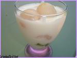 fouettez le fromage blanc avec une cuillère à café de miel et deux du sirop de litchee