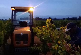 C'est au petit matin que nous avons surpris les jeunes grenaches dans leur sommeil. Puis, quelques vieux carignans noirs, cépage tardif, ont suivis dans les bennes. Les vendanges continuent, toujours dans la bonne humeur. Voilà une semaine de vendange qui s'achève sous un ciel gris, après quatre heures de cueillette, quelques averses nous obligeant à se mettre à l'abri.