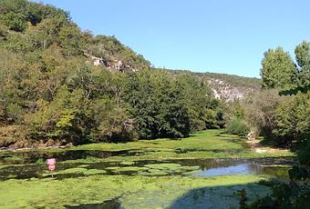 un petit village perdu aux pieds de la falaise. on y trouve(ait) des maisons troglodytes, certaines se sont même effondrées. pour y entrer, nous sommes passés par un passage rempli de végétation méditerranéenne. c'était fabuleux ! puis, on y trouve des petites maisons et neuf habitants l'hiver. l'endroit est calme en cette période de l'année. la ballade en bateau fut très intéressante pour tant de choses : en apprendre davantage sur ce village et le voir autrement, sur la région mais aussi sur la rivière.