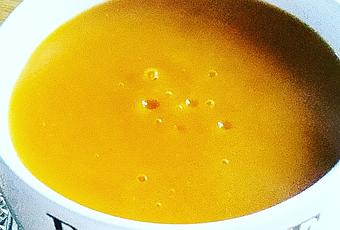 Ici c'est un velouté aux carottes des sables, une variété de carotte en goût bien prononcé (ma préférée), parfumé au curry doux... EXTRA et simple à faire surtout si comme moi vous avez le petit appareil à soupe!!! Sinon pas de panique en cocotte c'est pareil!