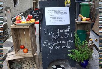 Quand vous arriverez au bout de l'allée menant au Théâtre de Poche vous serez étonné de voir quelques cageots exposant des pommes (à cuire), des pommes de terre, quelques grosses tomates et du basilic qui embaume.La proposition tombait à pic pour moi qui n'avais pas eu le temps de faire quelques courses. J'ai toujours un sac fin plié dans mon sac. J'ai pris l'essentiel pour mon dîner.
