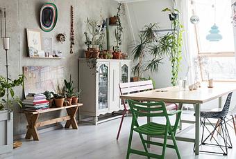 Utrecht, c'est notre coup de cœur de l'hiver dernier ! On y a passé un super week-end et c'est un endroit dans lequel on retournera volontiers cette année. La ville est pleine de charme, il y a plein de boutiques et de concepts sympas, l’atmosphère est apaisante et la campagne environnante à couper le souffle ! C'est dans cette campagne, accessible à quelques coups de pédales du centre ville (et oui, à Utrecht si tu te déplaces pas à vélo, t'es pas un homme...) que se niche cette sublime maison de 130m2, dans le corps d'une ancienne ferme. Gros craquage pour cet intérieur qui déborde de vie, de créativité et tout particulièrement pour la grande pièce à vivre, très lumineuse et pleine d'énergie. Le contraste entre le mur en béton et le mobilier chiné dépareillé de toutes les couleurs est réussi. Les plantes ont envahi la pièce et sont superbement mises en valeur. On se croirait dans un atelier d'artiste New-Yorkais !