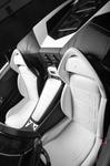Un cuir Nappa blanc recouvre l'ensemble de l'habitacle. La sellerie, quant à elle, est déclinée en bi-ton blanc et noir.