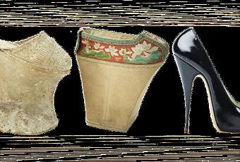 Photographies ci-dessous de gauche à droite : Chopine du XVIe siècle, chaussure mandchoue et escarpin du XXe siècle. Photographies provenant du site du musée. Les échelles ne sont pas respectées. Même en étant à nos pieds, les chaussures peuvent faire prendre de la hauteur !