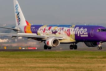 L' Embraer 195 exploité par Flybe dont le train d'atterrissage est conçu, fabriqué et entretenu par Liebherr-Aerospace - © Flybe