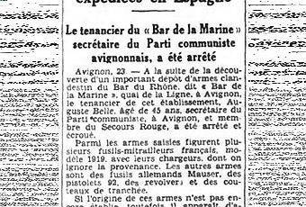 Dépôt d'armes clandestin decouvert dans un bar d'Avignon quai de la Ligne (lettre