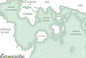 En 1942, l'océanographe et géophysicien Athelstan Frederick Spilhaus réalisa une carte très originale sur laquelle les ensembles océaniques sont représentés au centre du monde.