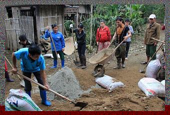 Chantier solidaire au Vietnam. Les personnages, hommes et femmes présents sur cette photographie, s'adonnent ici à une activité physique non-récréative.