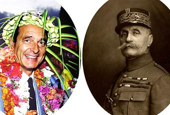 Jacques Chirac en Polynésie (DR) et Ferdinand Foch par R. Melcy, 1921Ceci est une histoire vraie. Elle m’est arrivée il y a tout juste vingt ans. Il y a désormais prescription. J’effectuais alors mon service militaire à l’École militaire située à l’extrémité d’un vaste jardin public baptisé du nom du dieu de la guerre, Champs-de-Mars. Je passai les dix mois de conscription au sein d’un bâtiment flambant neuf inauguré quelques mois plus tôt par le président de la République Jacques Chirac, chef de l’État, chef des armées, coprince d’Andorre et chanoine d’honneur de la basilique Saint-Jean-de-Latran…