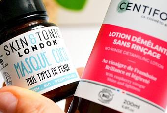 - CENTIFOLIA – lotion démêlante sans rinçage au vinaigre de framboise et enrichie en aloe vera. Un produit cheveux qui apporte brillance et légèreté bio sans produits cracra dans la composition. Les plus rigoureux remarqueront la présence benzyl alcohol dans la liste des ingrédients mais il est placé en dernière position, sa faible concentration ne le rend pas nocif. Bio et made in France 200ml