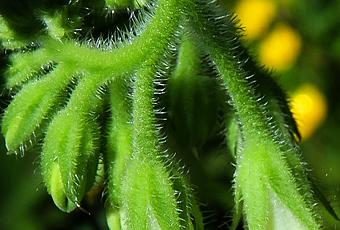 Symphytum officinale (Consoude officinale) : herbacée vivace à souche charnue, robuste et hérissée de poils raides ; grandes feuilles aux nervures bien marquées, sessiles longuement décurrentes sur la tige ; fleurs tubulaires, corolle 2-3 fois plus longue que le calice, blanche, rose ou lilas, se terminant par 5 dents généralement recourbées vers l'extérieur.