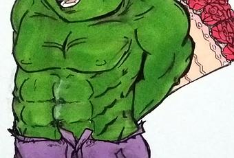 J'ai alors voulu partir sur un contre-pied en décidant de dessiner un héros plutôt énervé et brutal, pour le rendre doux comme un agneau et timide. Je reviens donc côté Marvel, avec Hulk.
