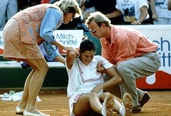 Le 30 avril 1993, Monica Seles dispute une rencontre lors du tournoi WTA de Hambourg. Alors âgée de 19 ans, elle est opposée à la Bulgare Magdalena Maleeva. Tout se déroule pour le mieux pour Monica qui mène 6-4/4-3 lorsque l’impensable va se passer. En effet, alors qu’elle est assise sur sa chaise lors d’un changement de côté, on assiste à un geste fou d’un nommé Günter Parche, ouvrier au chômage de 38 ans, qui échappe à la surveillance des vigiles et la poignarde dans le dos avec un couteau de cuisine. Grand admirateur de Steffi Graf, la rivale de Seles, l’homme espérait ainsi lui assurer la place de n°1. La blessure est superficielle, mais Seles, psychologiquement, a eu du mal à s’en remettre. La joueuse sombre dans la dépression et ne refera surface qu’en 1995. Néanmoins, elle ne retrouvera jamais son meilleur niveau, malgré un titre à l’Open d’Australie en 1996 et refusera de jouer en Allemagne.