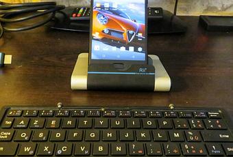 Mon Doogee sur son support et le clavier Bluetooth déplié