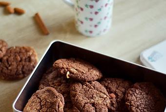 LA LISTE DE COURSES : 250 g de beurre demi - sel , 300 g de sucre en poudre , 440 g de farine , 2 oeufs , 200 g de chocolat noir patissier , 1 sachet de levure chimique , 3 cuillère à soupe de Benco ( du cacao en poudre fera l'affaire ) , quelques amandes entières , 1 cuillère à soupe de cannelle .