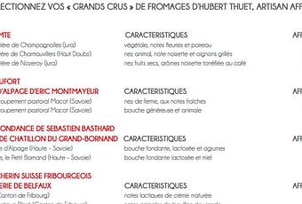 Un célèbre artisan affineur de la vallée a sélectionné plusieurs types de fromages: Beaufort, Vacherin Suisse, Comté... de différents affinages (de 4 à 40 mois), servis notamment avec des légumes, des morilles et des escargots. En salle, tel un sommelier, ce " fromagier " expert, conseille les clients selon les goûts et les envies du moment (une fondue de cépage ou une fondue d'assemblage) comme " un maître de chai " Bourguignon ou Bordelais.