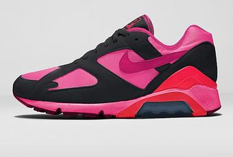 Cela faisait déjà quelques années qu’on avait pas vu de Air Max 180, les dernières datant de l’été 2014. Aperçues lors d’une fashion week parisienne cet été, les spéculations vont bon train depuis. Nous pouvons vous confirmer trois coloris essentiellement composés de rose éclatant. La première se pare d’une structure noire et de nylon rose, la seconde plutôt blanche avec du rose et du rouge. La troisième, non imagée ici, propose une structure lila et là encore le rose criard vient compléter l’ensemble.