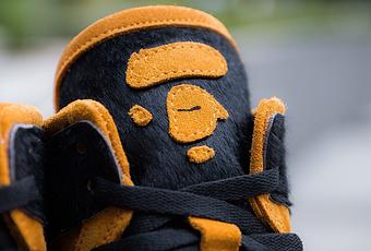 Deux silhouettes iconiques merge grâce à l’inventivité de Panda Custom. Cette Air Jordan 1 utilise certains éléments clés de la Bapesta en remplaçant le swoosh par le fameux “Bape Star Logo” sur les panels et le logo Nike sur la languette par la Big Ape Head. Construite avec du suède premium caramel et du pony hair noir, cette BAPE x Air Jordan 1 custom vient accompagnée d’un sac banane utilisant les mêmes matériaux.