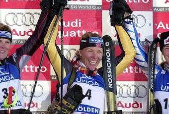 En effet, ce jour là se déroule le géant féminin et cette course verra trois filles se partager la victoire : l’Autrichienne Nicole Hosp, la Norvégienne Andrine Flemmen, meilleur temps de la première manche, et la Slovène Tina Maze, âgé de 19 ans.