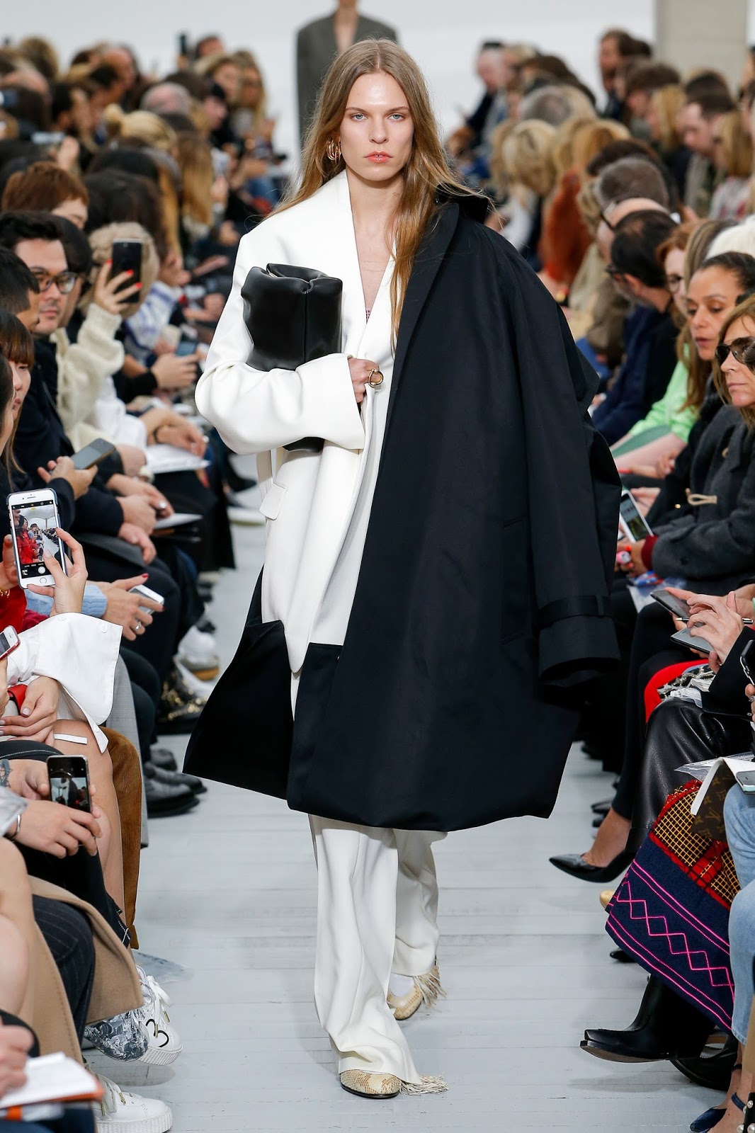 Enfin, chez Celine, Phoebe Philo a aussi offert des silhouettes doubles avec des manteaux se superposant aux vestes. Ici, la proposition est d'un chic absolu alors que par un système d'attaches subtile, la créatrice imagine une dégaine nonchalante toute en élégance qui évoque cette manière impassible dont on peut poser un manteau sur les épaules pour jouer les parisiennes romantiques et indépendantes (ou alors qui aurait emprunté son par-dessus à un amoureux galant).