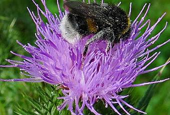 Cirsium vulgare (Cirse commun) : tige dressée, ramifiée et ailée ; feuilles longuement décurrentes, à lobes étroits terminés par de fortes épines jaunâtres ; capitules de fleurs purpurines, rarement blanches, bractées pourvues d'une longue pointe étroite et piquante.