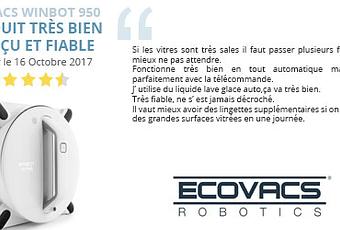 " Produit très bien conçu et fiable " de Doc le 16 octobre 2017 - 4.5 étoiles pour le robot laveur de vitre WINBOT 950 ECOVACS