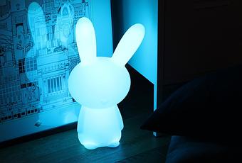 Pour celles qui traînent pas mal sur les blogs déco ou bébé, vous avez sûrement déjà du apercevoir aperçu un autre lapin lumineux - répondant au doux prénom de Miffy - qui vous a fortement poussé vers l'adoption mais dont le prix a un peu calmé vos ardeurs ... Et bien oubliez Miffy ! Parce que celui-ci est encore plus chou, il prendra le prénom que vous lui donnerez (oui parce que "Miffy", à bien y réfléchir, c'est bofbof hein !), il changera de couleur selon vos humeurs (je fais des rimes), et bonus non négligeable : il chantera vos playlists favorites ! (et je dois dire qu'il chante plutôt bien :P )