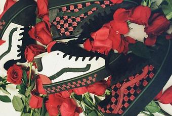 Pour ce travail commun, les deux modèles placés au centre de l’attention sont la Old Skool et la Mid Skool. Pour le colorway choisi, quoi de mieux que ce rouge emprunté à la rose, symbole même de la séduction, et ce blanc pur. L’alchimie du pack est réussie. L’identité de cette collaboration réside dans l’appropriation du checkerboard classique, ce dernier laisse place à un damier où des motifs de roses sont venus prendre la place des carreaux blancs. On retrouve ainsi les versions noires construites autour de ce “rose checkerboard”, le reste des différents panels étant noirs, avec une nuance apportée par ce liseré vert qui orne le semelle. Pour les versions blanches, le choix est différent, le damier n’est pas appliqué sur l’upper mais sur la semelle extérieure, un autre changement se présente avec un talon rouge et une partie avant noire.