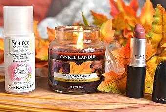 De la gamme des "Fresh", Automn glow est décrite ainsi par la marque : "souvenir d'une ballade d'automne où des notes de patchouli se mêlent à l'odeur des feuilles tourbillonnantes, sous un soleil doré". En pratique, cela donne une odeur musquée avec le patchouli bien présent en fond. La fraîcheur est apportée par des notes d'agrumes que l'on sent de premier abord mais qui se font vite oublier. C'est une bougie juste parfaite pour la saison, en plus elle diffuse vraiment très bien mon salon/salle à manger !11.90€ la petite jarre chez les revendeurs de la marque et sur le site Yankee Candle