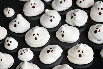 Astuce : Montez vos meringues sur des sablés au chocolat vous permettra de donner du relief aux petits fantômes d'Halloween