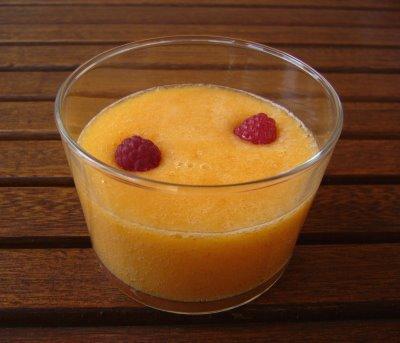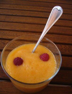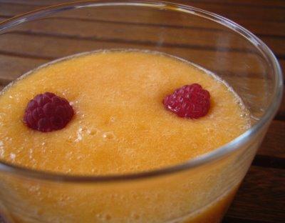 La tarte aux framboises ou le framboisier n’étant pas envisageables vu la faible récolte, j’ai décidé d’associer mes framboises à une soupe de melon.