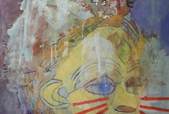 Ici, on ne pouvait pas voir les corbeilles de fruits, les bouquets disposés sur des tables, montrant l’intérieur d’une habitation. C’étaient des visages, parfois traversés de mots, des corps, squelette dans un geste d’ouverture ou femme nue prenant appui sur le sol, parfois même inscrite au bord de la rivière sous forme de rochers arrondis par le mouvement de l’eau.