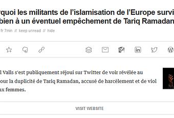 source : http://www.atlantico.fr/decryptage/pourquoi-militants-islamisation-europe-survivront-tres-bien-eventuel-empechement-tariq-ramadan-alexandre-del-valle-3212353.htmlQu’est-ce que je vous disais, déjà, à propos d’instrumentalisation grossière du féminisme pour nourrir le racisme ? Ben voilà, démonstration. Sur fond de théorie du Grand remplacement. Atlantico a bien mérité sa place sur le podium de la fachosphère aux côtés de FDesouche.