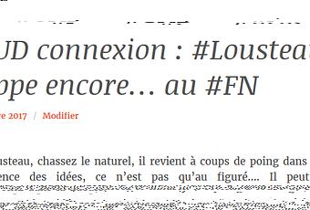 Voilà qui ne fait que me renforcer dans mes convictions que Lousteau est un type dangereux, et que le féminisme, au FN, est une véritable escroquerie morale, politique, et idéologique. Une insulte au féminisme, même pour des raisons que j’ai déjà détaillées et des arguments étayés à maintes reprises. CQFD.