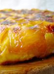 Lorsque la tarte est cuite, la démouler immédiatement sur un plat de service en se protégeant les bras avec des torchons...