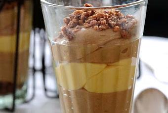 Versez l'équivalent d'une cuillère à café dans le fond des verrines , ajoutez une épaisseur de crème montée au praliné , ajoutez le curd , terminez par la crème pralinée et ajoutez des petits morceaux du croustillant .Réservez au frais .
