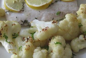 servir le chou fleur et le poisson arrosé d'un peu de jus de citron